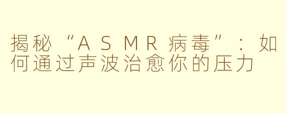 近年来,ASMR(自主感官经络反应)逐渐成为一种网络现象,许多人被其独特的声波体验所吸引,甚至称之为“病毒”。ASMR通过轻声耳语、敲击声、刷拭声等细腻的声音刺激,带来强烈的放松感和愉悦感。这种现象不仅在YouTube上获得了大量关注,还催生了众多ASMR影片创作者。