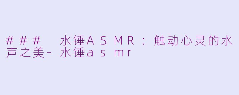 此外,水锤ASMR不仅可以帮助我们放松心情,还能在学习和工作时提供集中注意力的背景音。对于喜欢探索声音世界的人来说,它无疑是一种新颖而迷人的体验。无论是为了一瞬的宁静,还是为了重新找回内心的平和,水锤ASMR都将带给我们意想不到的视听享受。