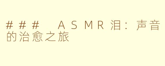 无论是为了缓解焦虑,还是寻找情感共鸣,ASMR泪为我们打开了一扇通往自我内心的门,揭示了声音与情感之间深刻而微妙的联系。通过这种独特的体验,很多人重新审视了自我,找到了内心的宁静与力量。