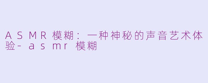 近年来,ASMR(自主感觉经络反应)成为了许多人放松和减压的方式。而“ASMR模糊”作为一种新的声音艺术形式,借助柔和的音效和模糊的语音带给听众一种超然的沉浸感。它通过轻柔的耳语、细微的声音变化以及背景的环境音,营造出一种恍惚的状态,让人仿佛置身于梦境之中。