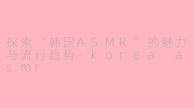 近年来,ASMR(自发性颅内高潮反应)在全球范围内迅速崛起,而韩国的ASMR则以其独特的风格和文化背景吸引了大量粉丝。韩国ASMR视频通常融入了丰富的声音效果,例如轻声细语、轻敲、刷子声等,能够让观众感受到宁静与放松。