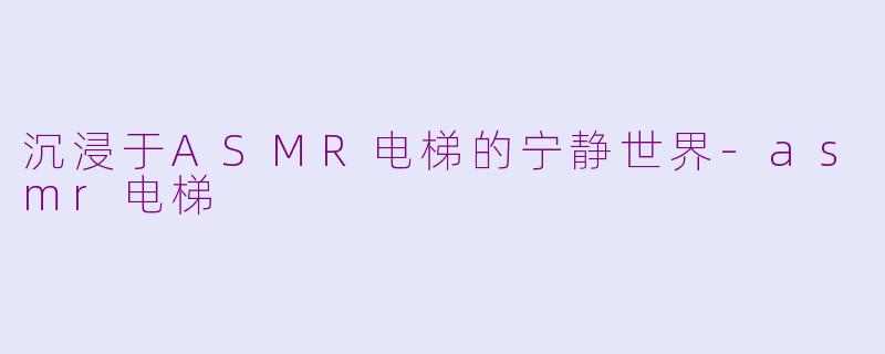 在现代社会,快节奏的生活常常让人感到疲惫不堪。越来越多的人开始寻找放松和解压的方式,而ASMR(自发性知觉经络反应)便成为了一种流行的选择。在众多ASMR题材中,“电梯”相关的声音体验,因其独特的氛围而备受欢迎。