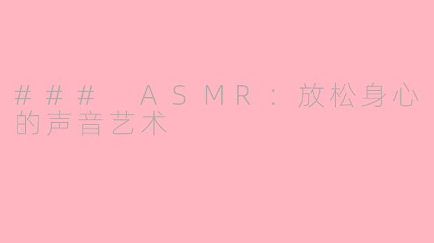 ASMR(自主感官经络反应)是一种通过特定声音和视觉刺激引发的愉悦感受,近年来在网络上备受欢迎。这种现象可以使听者体验到轻微的愉悦和放松,常常伴随着一种温暖的刺痛感。常见的ASMR触发因素包括轻声耳语、纸张翻动、物品碰撞等细腻声音。