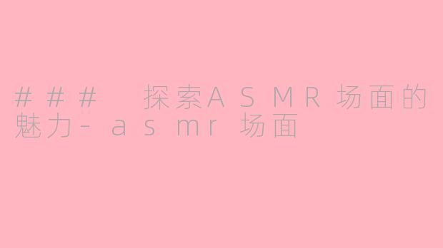 在当今快节奏的生活中,ASMR(自发性知觉经络反应)逐渐成为一种新兴的放松与娱乐方式。ASMR场面通常以安静、舒缓的环境为背景,通过声音、视觉和触觉的刺激,帮助人们释放压力,缓解焦虑。