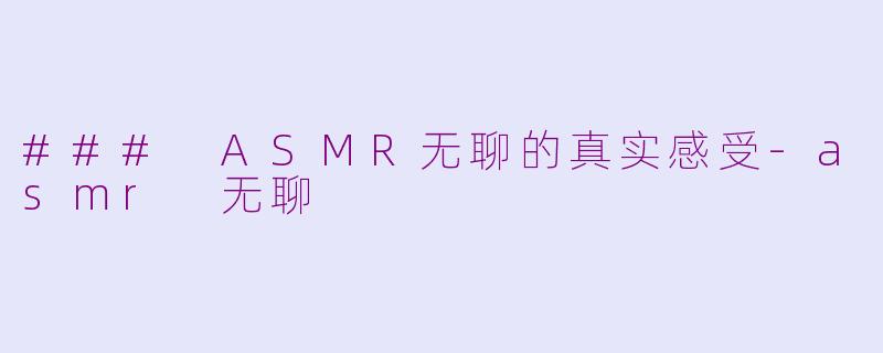 在这个快节奏的时代,许多人都在寻找有效的放松方式,ASMR(自发性知觉经络反应)便成为一种流行的疲惫解药。然而,有时候ASMR也会让人感到无聊。许多人对ASMR的热衷源于它带来的平静和放松,但当我们频繁收听相似的音频时,感受便可能逐渐变得平淡。