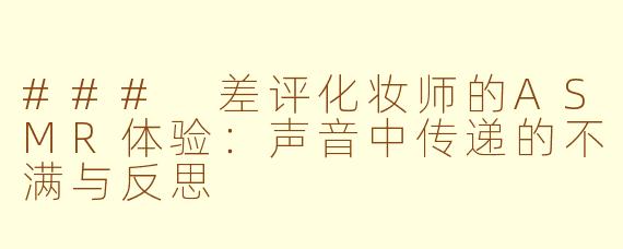 在ASMR的世界中,细致的刷子触碰、粉底的轻声涂抹,甚至是镜子前的不满自语,都让人感受到一种意想不到的亲密感。这不仅是一种听觉上的享受,也是一种情感的共鸣。通过“差评化妆师”的视角,观众得以窥见那些光鲜背后不易被理解的故事:来自客户的不满、来自行业的压力,甚至是自身创作的无奈。asmr.jpg)