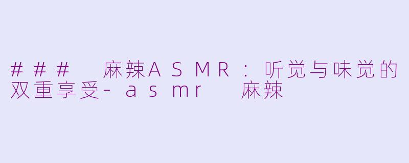 在当今的网络时代,ASMR(自发性知觉经络反应)已经成为一种广受欢迎的放松方式。而“麻辣”则是许多人心中的美味。这两者的结合,形成了一种全新的感官体验,让人不仅能够享受声音的细腻,还能够享受口味的刺激。