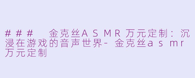 近日,市场上推出了一项“金克丝ASMR万元定制”服务,吸引了大量粉丝的关注。这项服务不仅仅是简单的声音录制,还结合了角色扮演及高质量的音效制作。玩家可以通过定制,获取包含游戏内经典台词、角色互动以及独特音效的ASMR作品,从而在游戏之余,享受金克丝带来的奇妙声响体验。