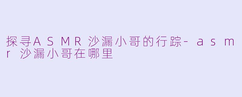 在这个喧闹的世界中,ASMR(自发性感觉经络反应)视频已经成为许多人寻求放松和舒缓的方式。而其中一位名为沙漏小哥的ASMR创作者,因其独特的声音和技巧,已经赢得了许多粉丝的喜爱。但是,最近关于沙漏小哥下落的消息却变得神秘起来,许多粉丝纷纷询问:沙漏小哥在哪里?