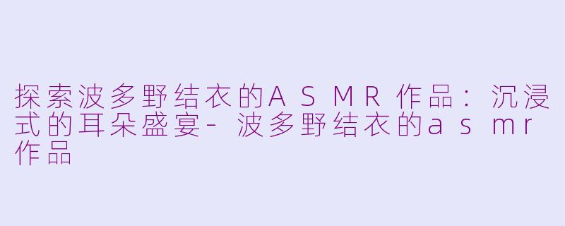 近年来,ASMR(自发性知觉经络反应)在网络上迅速走红,越来越多的人开始追寻这类能够带来放松与愉悦感的内容。作为一位知名的日本女优,波多野结衣(波多野结衣)同样也参与了ASMR作品的创作,以其独特的声音和魅力吸引了众多粉丝。