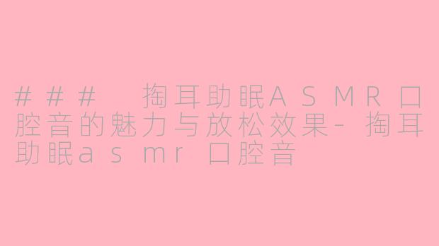 在现代快节奏的生活中,压力普遍存在,很多人都难以找到放松和入睡的时刻。而ASMR(自发性知觉经络反应)逐渐成为一种受欢迎的减压方式,其中“掏耳助眠”这一细分领域尤其引人注目。掏耳助眠ASMR通过细腻的口腔音效,如轻柔的耳朵触碰声、轻轻的咀嚼声以及温柔的耳语,让听者产生一种深度的放松感。