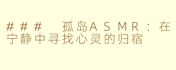 无论是在工作间隙,还是临睡前,孤岛ASMR都能让我们找到那份久违的放松。闭上眼睛,耳畔响起海浪的低语,仿佛整个世界都在这一刻停息。让我们一起体验孤岛ASMR带来的独特魅力吧!