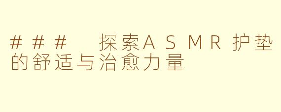 在当今快节奏的生活中,许多人都在寻找放松和减压的方法。其中,ASMR(自发性知觉经络反应)逐渐受到关注,成为一种新的舒缓体验。而将ASMR应用于护垫产品中,揭示了“不一样的舒适”。
