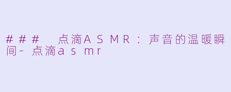 ASMR(自主感官经脉反应)是一种通过声音和视觉刺激引发的愉悦体验。近年来,越来越多的人开始关注和探索这一现象。点滴ASMR,以其细腻而温暖的声音,成为了许多人的心灵慰藉。
