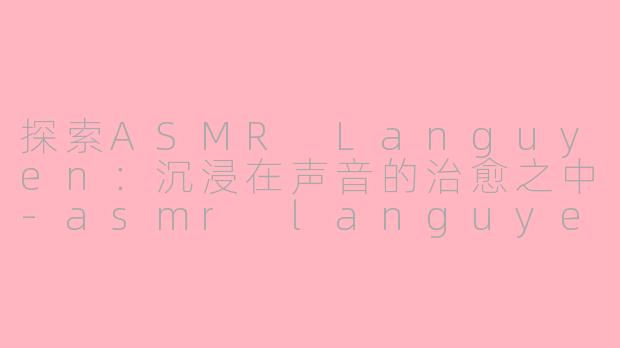 近年来,ASMR(自主感觉经络反应)逐渐成为一种流行的放松与减压方式,而Languyen则是其中一位备受欢迎的ASMR内容创作者。她通过细腻、温柔的声音,营造出一种独特的氛围,让听众在繁忙的生活中获得片刻的宁静。