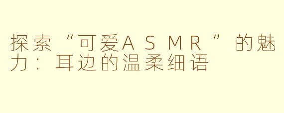 在如今这个快节奏的生活中,越来越多的人开始寻找心灵的宁静,而“可爱ASMR”正好满足了这一需求。ASMR(自发性知觉经络反应)是一种独特的听觉体验,能够通过细腻的声音带来舒适与放松。当我们听到轻柔的耳语、撕纸声或是轻轻的敲击声时,心灵似乎得到了抚慰。
