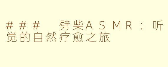无论是在工作之余,还是在繁忙的一天结束后,劈柴ASMR都能成为一种温暖的陪伴,让人找到内心的平静与安宁。