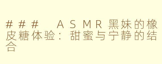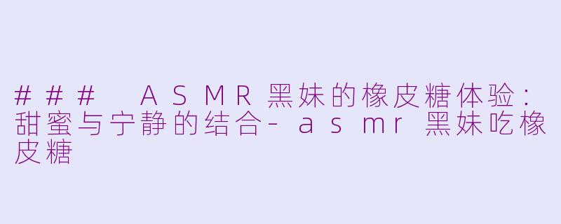 近年来,ASMR(自主感觉经络反应)成为了一种广受欢迎的放松方式,而“黑妹吃橡皮糖”的视频则以其独特的魅力吸引了大量观众。视频中的黑妹用细腻的声音和生动的表情,带领观众进入了一个充满甜蜜与宁静的世界。
