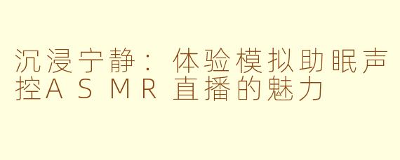 在快节奏的现代生活中,越来越多的人面临失眠和焦虑的问题。为了助力放松与入眠,模拟助眠声控ASMR直播应运而生。这种直播通过高质量的声音效果,让观众沉浸在轻柔的耳语、细腻的触碰声和自然的环境音中,从而达到舒缓紧绷的神经,促进放松。