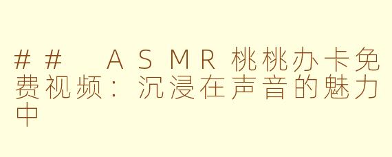 随着ASMR(自发性知觉高潮反应)现象的流行,越来越多的人开始关注这种通过声音带来的放松体验。最近,一段名为“ASM桃桃办卡免费视频”的视频引起了不少网友的关注。