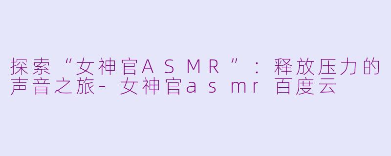 在现代生活中,许多人面临着各种压力和焦虑,而ASMR(自发性知觉经络反应)作为一种放松方式,越来越受到关注。其中,“女神官ASMR”作为一类热门的声音视频,以其独特的魅力吸引了众多粉丝。