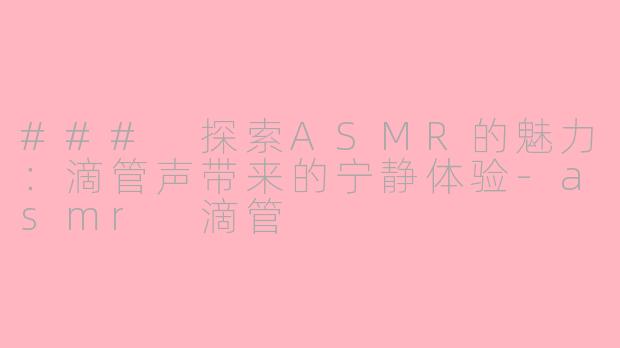 近年来,ASMR(自发性知觉经络反应)成为了许多人放松和减压的新方式。在众多ASMR触发音效中,滴管声以其独特的清脆和节奏感,吸引了大量听众。滴管的声音轻柔而细腻,仿佛能穿透日常生活的喧嚣,带来一丝宁静。