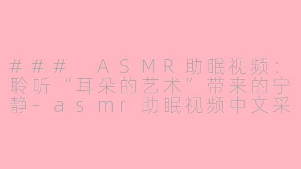 在现代快节奏的生活中,许多人都面临着失眠和焦虑的问题。近年来,ASMR(自发性知觉经络反应)视频逐渐成为一种流行的放松方式。其中,中文采耳ASMR视频尤为受到欢迎,成为不少人助眠的首选。
