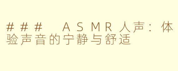 ASMR(自主感官经络反应)是一种通过特定的声音和视觉刺激,带给人们愉悦和放松体验的现象。在众多ASMR类型中,人声ASMR因其亲切和自然,备受欢迎。这种类型的ASMR通常通过轻声细语、呢喃、耳边低语等声音,带给听众一种独特的心灵安慰。