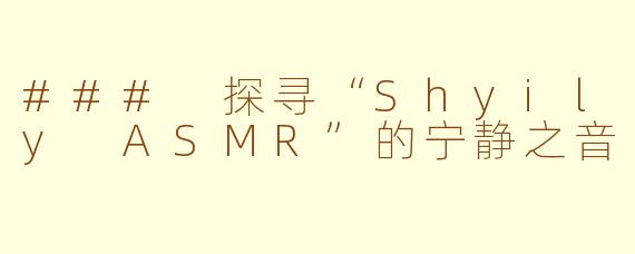 在当今快节奏的生活中,越来越多的人寻求放松和安宁。而“Shyily ASMR”正是一股清新的风潮,以其独特的声音和细腻的表达方式,让听众在纷扰中找到一方宁静的避风港。