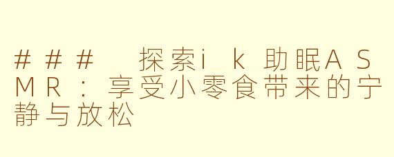在快节奏的生活中,很多人都在寻找有效的放松方式,而ik助眠ASMR正是其中一种受到欢迎的方法。ASMR(自主感觉经络反应)可以通过声音刺激,让人们感受到深度放松,从而帮助入睡。而结合小零食的吃播ASMR,更是为这种体验增添了一份美妙的味觉享受。