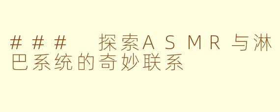 随着ASMR(自主感官经络反应)在网络上的流行,越来越多的人开始关注这种让人放松的声音体验。ASMR常常通过轻声细语、耳语、敲击声等音频刺激,引发听众的愉悦反应。而淋巴系统则是我们身体的重要组成部分,负责排毒和维持免疫力。那么,ASMR和淋巴系统之间究竟有什么联系?