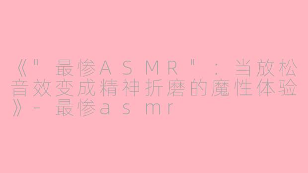 在ASMR(自发性知觉经络反应)风靡全球的今天,无数人依赖轻柔的耳语、敲击声或摩擦音来缓解压力。然而,有一类被称为"最惨ASMR"的内容却反其道而行——它们以刻意制造的刺耳噪音、不协调的节奏或诡异氛围,将本该治愈的体验硬生生扭转为"精神酷刑"。