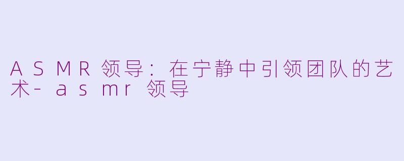 由此可见,ASMR领导不仅仅是一种新兴的管理风格,更是一种能够提升团队士气、增强凝聚力的有效策略。在这个快节奏的时代,重视心理健康与情感联结的领导方式,将为企业的可持续发展注入新的活力。