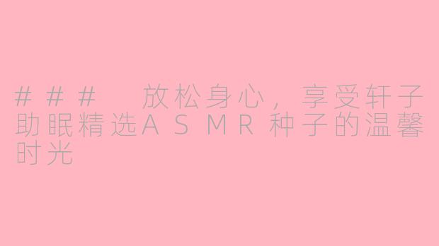 随着生活节奏的加快,越来越多人面临着失眠和焦虑的问题。相比于传统的助眠方法,ASMR(自发性知觉经络反应)因其独特的放松效果而备受青睐。轩子助眠精选ASMR种子,正是这样一款能帮助你缓解压力、轻松入眠的音频合集。
