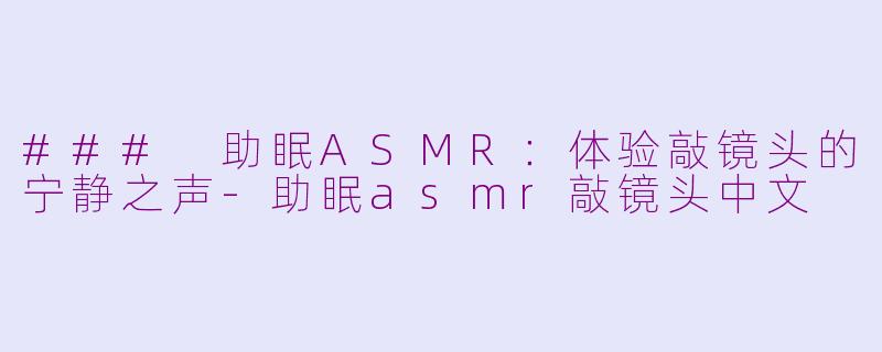 在快节奏的生活中,许多人面临着失眠和压力的问题。助眠ASMR(自主感觉经络反应)成为越来越多人缓解焦虑和促进睡眠的选择。特别是“敲镜头”这一独特的ASMR录制方式,通过轻柔的敲击声和细腻的音效,带来了无与伦比的放松体验。