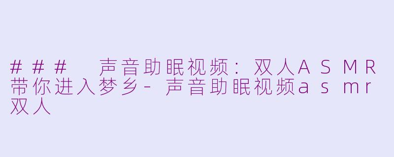 在现代快节奏的生活中,许多人常常面临失眠的问题。为了帮助人们更好地放松和入眠,声音助眠视频应运而生。特别是双人ASMR(自发性知觉经络反应)视频,以其独特的声音组合和情境设置,深受观众喜爱。