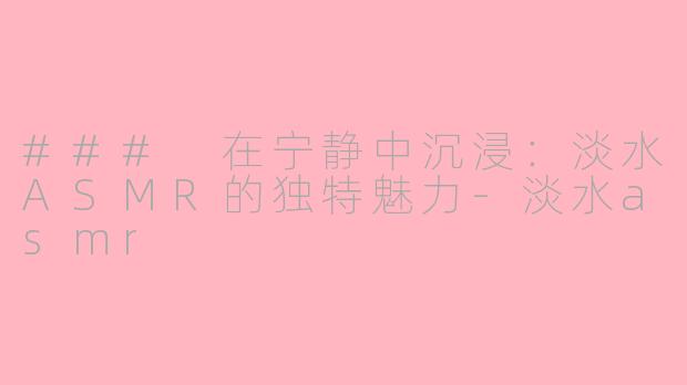 在繁忙的生活中,淡水ASMR成为了一种难得的放松方式。它不仅可以帮助人们减轻压力、提高睡眠质量,还能让我们更深刻地体会到自然的美好。许多人选择在工作后或睡前,聆听淡水ASMR,以便将心灵带入宁静的状态。