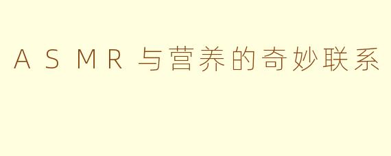 综上所述,ASMR不仅是一种心理放松的方式,还与营养有着密切的联系。通过欣赏这些声音艺术,我们不仅能够享受身心的愉悦,还能提升对营养和健康饮食的重视。