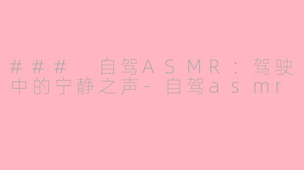 自驾游是一项深受欢迎的休闲活动,而近年来,“自驾ASMR”作为一种新兴的体验,逐渐走入人们的视野。ASMR(自发性知觉经络反应)的魅力在于能够通过特定的声音,帮助人们放松身心,减轻压力。在自驾过程中,车内外的声音如发动机的低吟、轮胎与路面的摩擦声,以及风吹拂窗户的沙沙声,都可以构成别具一格的ASMR体验。