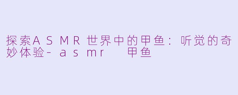 在当今社交媒体盛行的时代,ASMR(自主感官经络反应)逐渐成为人们放松身心的一种新方式。而作为自然界中独特的生物,甲鱼带来的声音体验同样引人入胜。甲鱼的壳碰撞、水中游动以及进食时的细腻声响,都能唤起人们内心的宁静与舒适。
