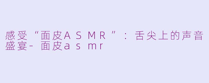 在当今的社交媒体时代,ASMR(自发性知觉经络反应)视频成为了一种新兴的放松和享受方式。其中,面皮ASMR更是以其独特的声音魅力吸引了无数观众。从撕扯的声音到咀嚼的回响,面皮ASMR带给人们的不仅是视觉的享受,更是听觉的盛宴。