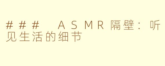在现代快节奏的生活中,越来越多的人开始追求放松与宁静。ASMR,亦即自主感官经络反应,正是满足这一需求的完美选择。无论是在深夜的书房,还是在阳光透过窗帘的午后,ASMR音频带来的低语、轻声和自然的声音,都能令人心旷神怡。