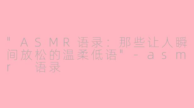 在快节奏的现代生活中,ASMR(自发性知觉经络反应)成为许多人缓解压力、寻找宁静的方式。无论是轻柔的耳语、细腻的环境音,还是充满关怀的对话,ASMR语录总能以独特的方式触动我们的感官,带来深度的放松与治愈。
