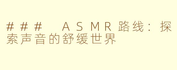 在快节奏的现代生活中,许多人寻找能够放松心情的方法,而ASMR(自发性知觉经络反应)无疑为我们提供了一条新的“路线”。ASMR是一种听觉体验,当某些特定的声音刺激触发时,会产生一种愉悦的、放松的感觉,通常伴随轻微的脑部愉悦反应。