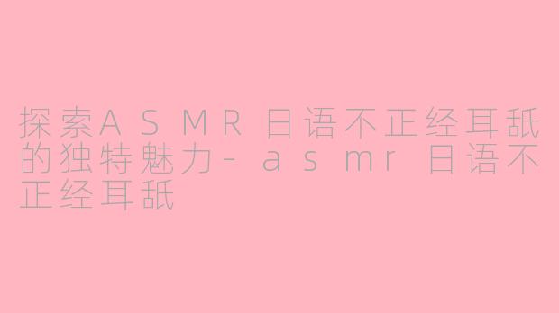近年来,ASMR(自发性知觉经络反应)在全球范围内引发了广泛的关注。在众多ASMR内容中,日语不正经耳舐作为一种独特的声音体验,吸引了不少爱好者。所谓“不正经”,通常指的是那些带有轻微调侃或玩笑性质的情境,可能会让听众在轻松愉悦的氛围中享受声音的美妙。