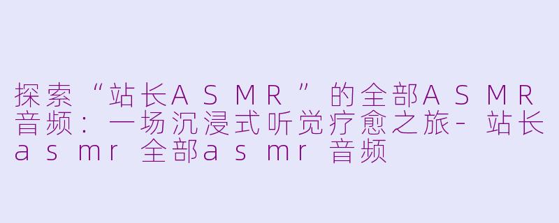 在快节奏的现代生活中,ASMR(自发性知觉经络反应)以其独特的舒缓效果成为许多人放松身心的选择。而“站长ASMR”作为国内知名的ASMR内容创作者,凭借细腻的音频制作和多样化的主题,积累了大量忠实听众。本文将带你全面了解“站长ASMR”的全部音频作品,挖掘其内容特色与疗愈价值。