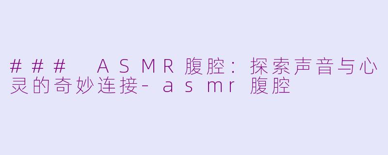 ASMR(自主性知觉经络反应)是一种通过特定声音或视觉刺激引起的愉悦体验,近年来在网络上引起了广泛关注。而“ASMR腹腔”则是一个相对新颖的概念,意指通过各种与腹部相关的声音,帮助人们放松身心,减轻压力。