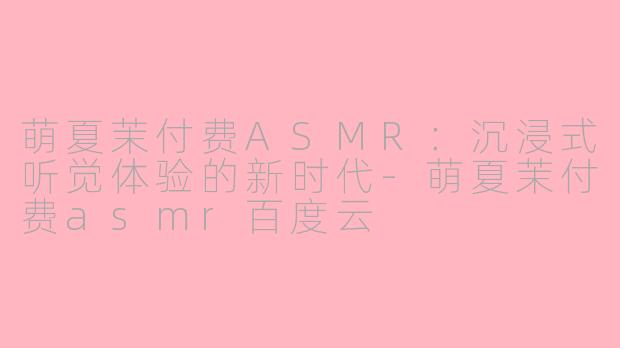 在现代社会中,ASMR(自发性知觉经络反应)逐渐成为一种受欢迎的放松方式。而在这一领域中,萌夏茉以其独特的声音和创意的内容脱颖而出,吸引了众多听众的关注。她的付费ASMR内容不仅提供了多样化的听觉体验,还能帮助人们缓解压力,提升睡眠质量。