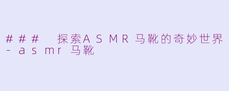 在这个快节奏的时代,ASMR马靴为人们提供了一种简单而有效的放松方式。无论是在忙碌的工作后,还是在深夜的独处时,聆听这些声音都能让人感受到一种宁静与舒适,让心灵得以片刻的栖息。