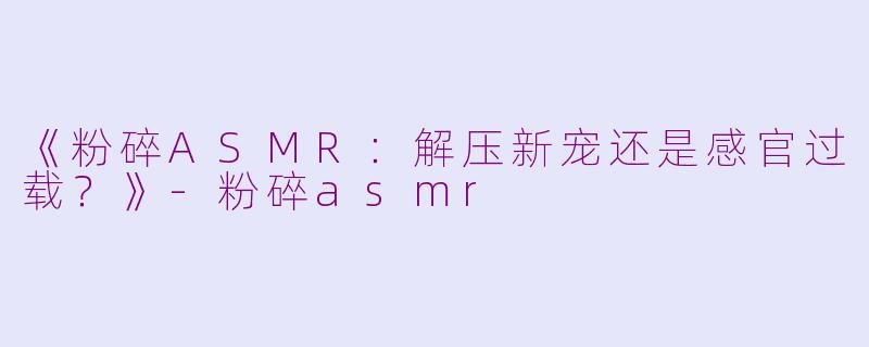 近年来,ASMR(自发性知觉经络反应)内容在社交媒体上掀起热潮,而“粉碎ASMR”作为其中一种小众分支,凭借其独特的破坏性视听体验迅速走红。从压碎肥皂、捏碎气泡纸到粉碎石膏模型,这类视频通过慢镜头捕捉物体碎裂的细腻声响与画面,为观众带来一种奇异的解压感。
